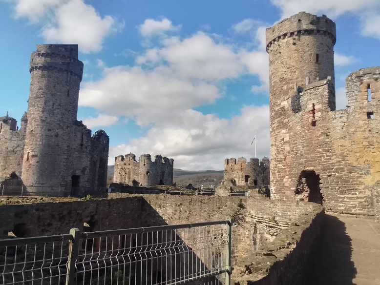 groundplans show that Flint is square with corner towers, Conwy is rectangular with towers set all along the walls,